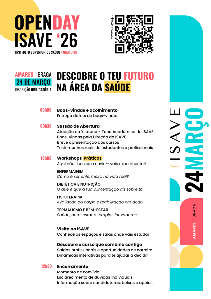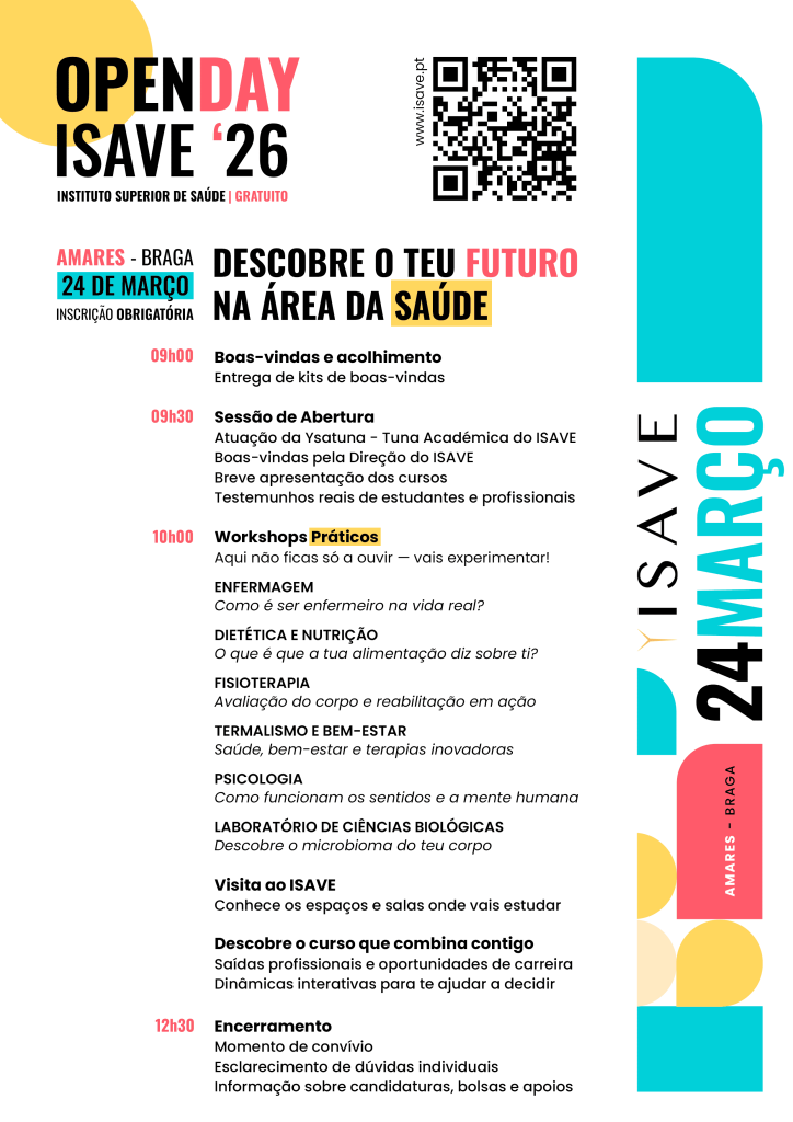 O Open Day ISAVE’26 é uma manhã dedicada a alunos do ensino secundário que querem conhecer melhor as áreas da saúde, experimentar na prática diferentes profissões e esclarecer dúvidas sobre o seu futuro académico e profissional.